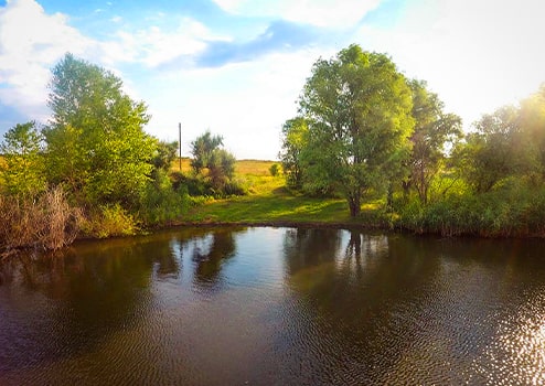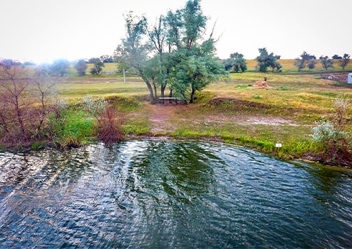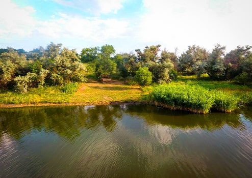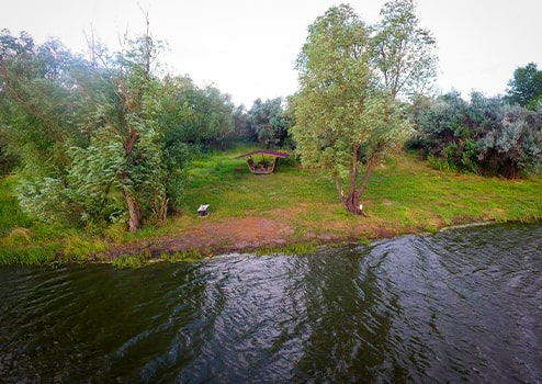 Це спокійне місце на березі водойми, укрите деревами та чагарниками. Тут ви знайдете комфорт, затишок, спокій та гарантовано залишитеся задоволені уловом. Підхід до місця пологий, покритий густою, невисокою травою, тому буде чистим навіть після дощу.