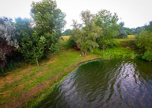 Це чудове зелене місце з пологим спуском, вкритим густою травою. Дерева оточують обидва боки, створюючи особливу атмосферу з природою. Тут панує тиша і спокій. Туалет знаходиться неподалік. Забронюйте сектор №24 прямо зараз і насолоджуйтесь риболовлею.