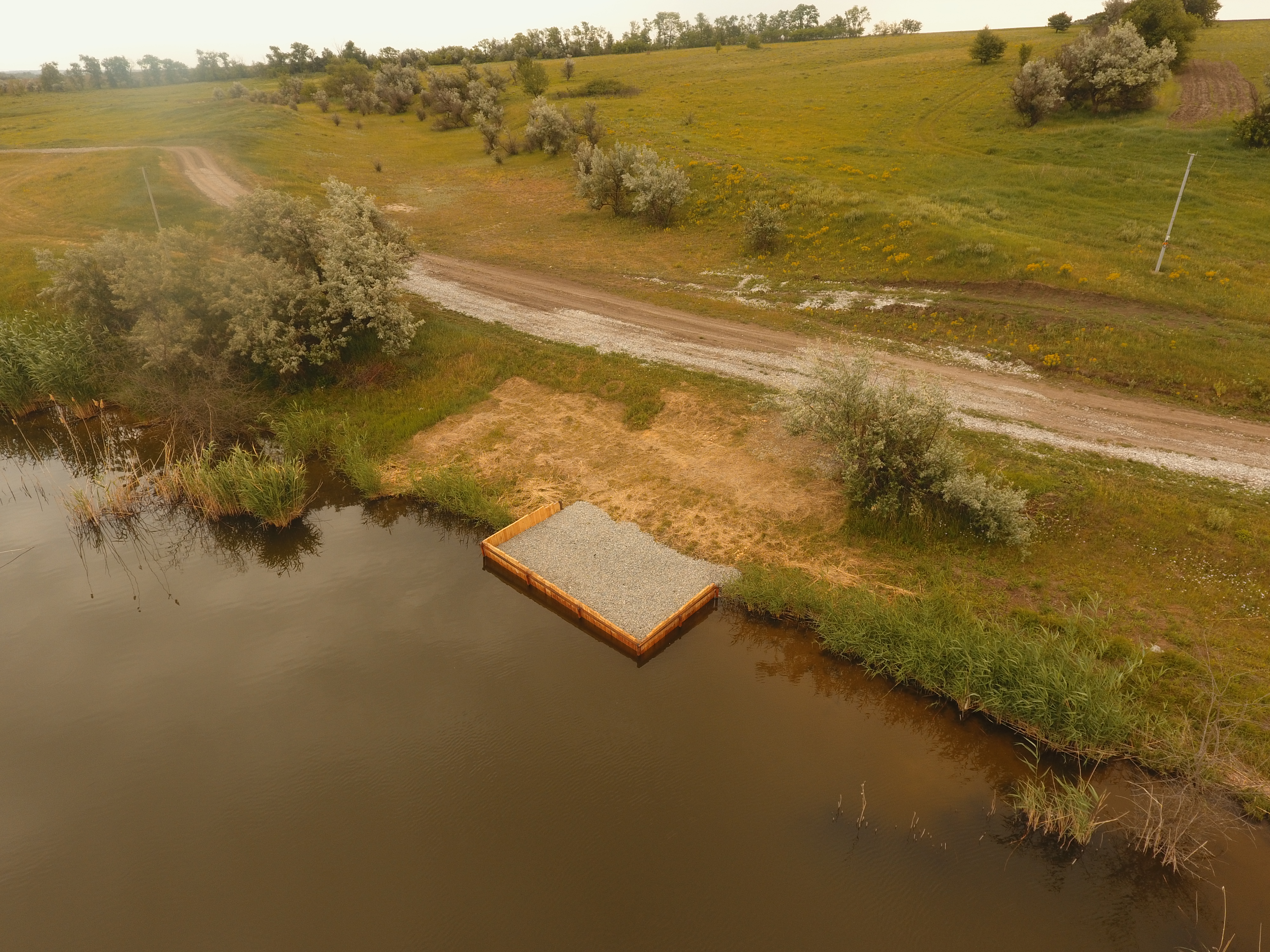 Затишне та комфортне місце на березі водоймища. Приватний сектор зі спуском до води, оточений кущами та очеретом. Можна рибалити з кількох вудок, навіть під час дощу, завдяки комфортному спуску та низькій траві.